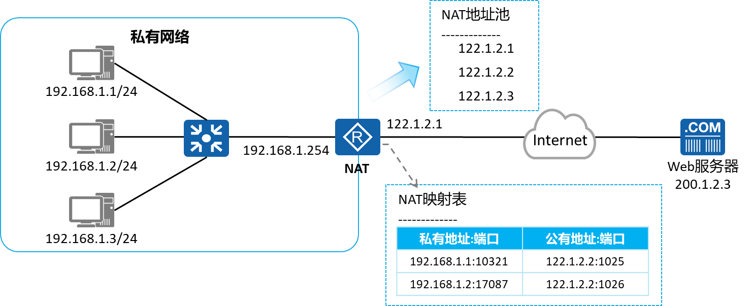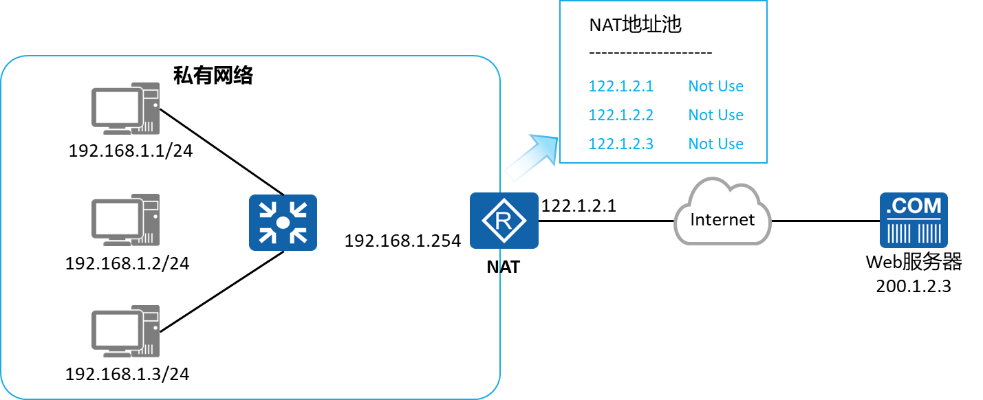 静态的NAT在没有人使用的情况下,随对应的公网IP地址也是处于被占用状态。